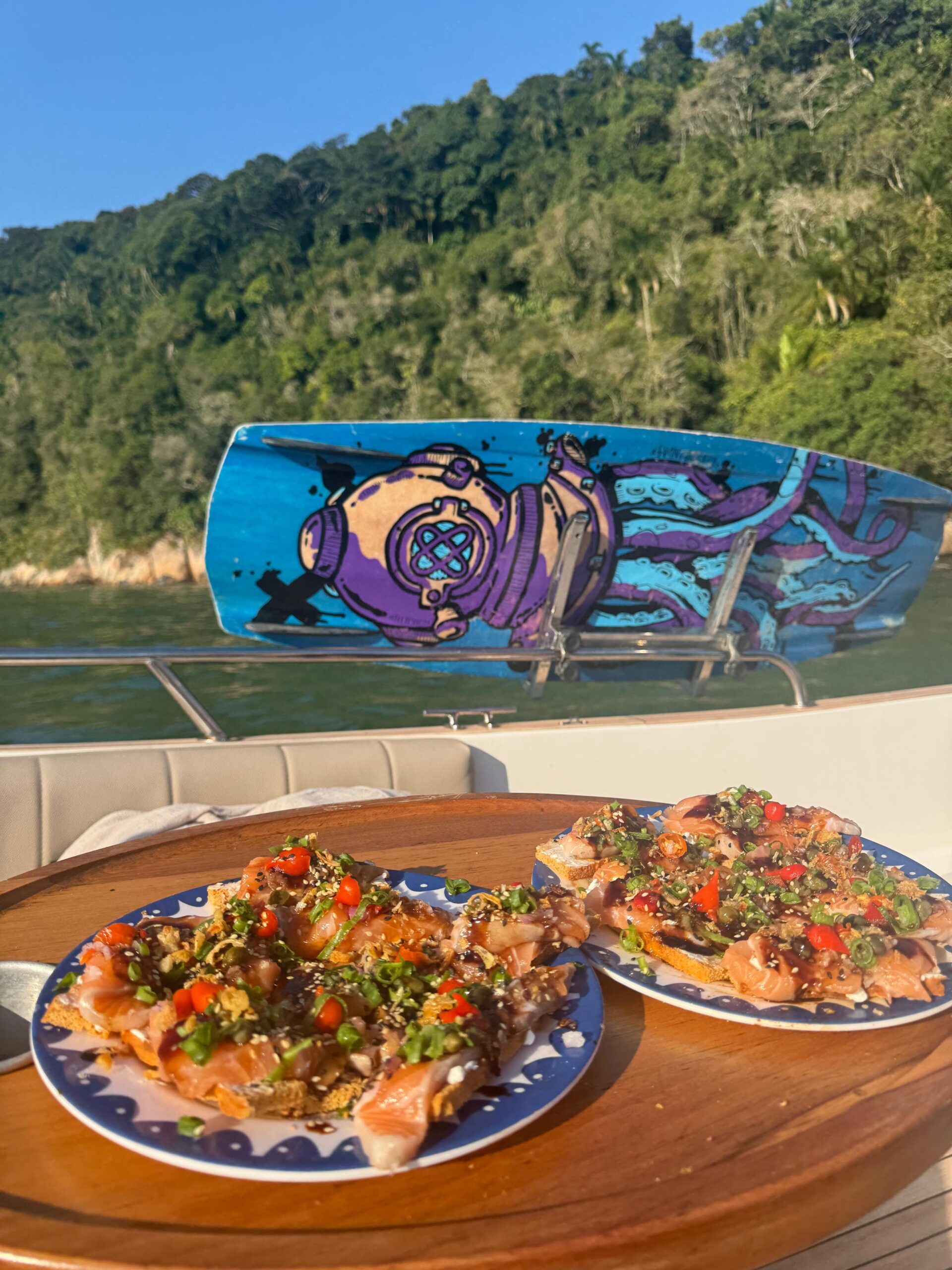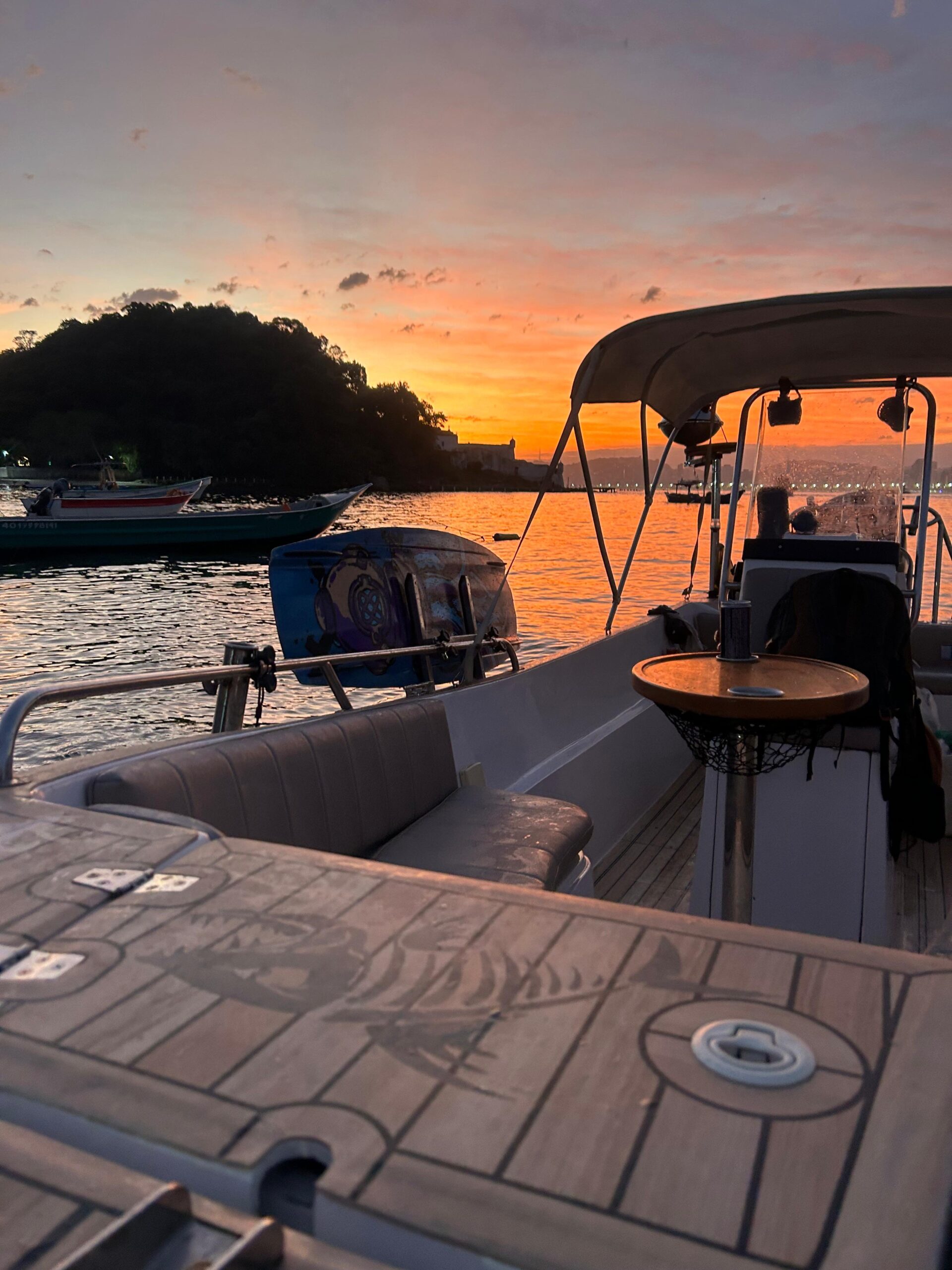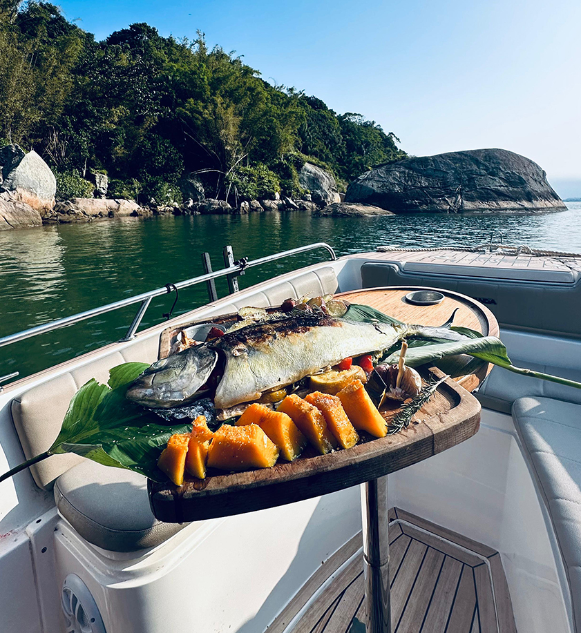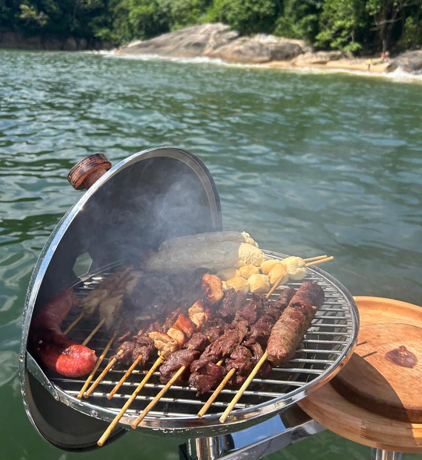 Itens de segurança: coletes salva-vidas, boias de emergência, extintor, rádio vhf e kit de primeiros socorros.