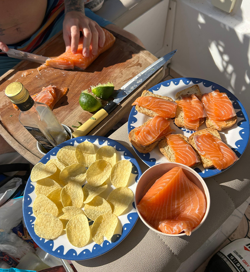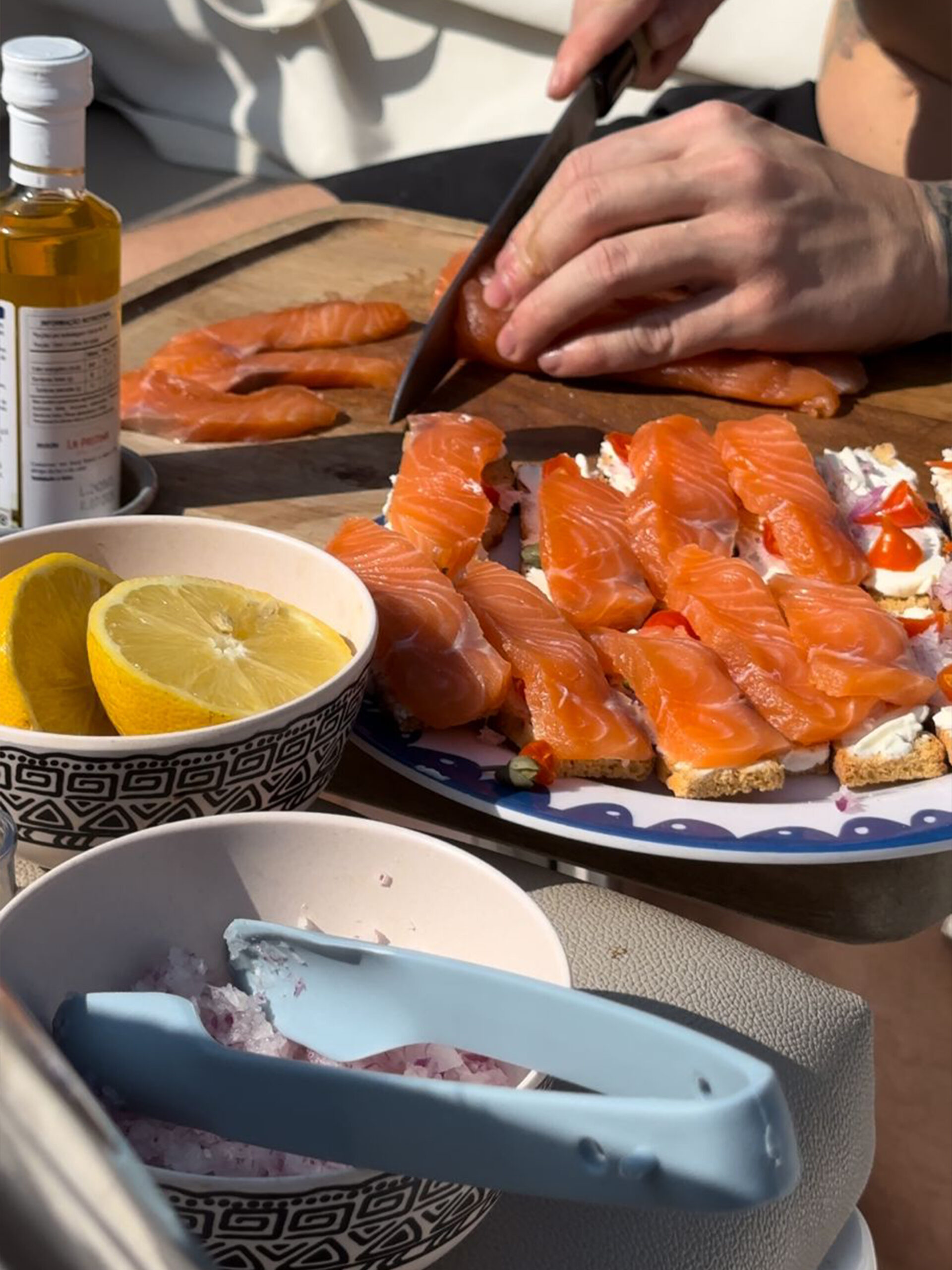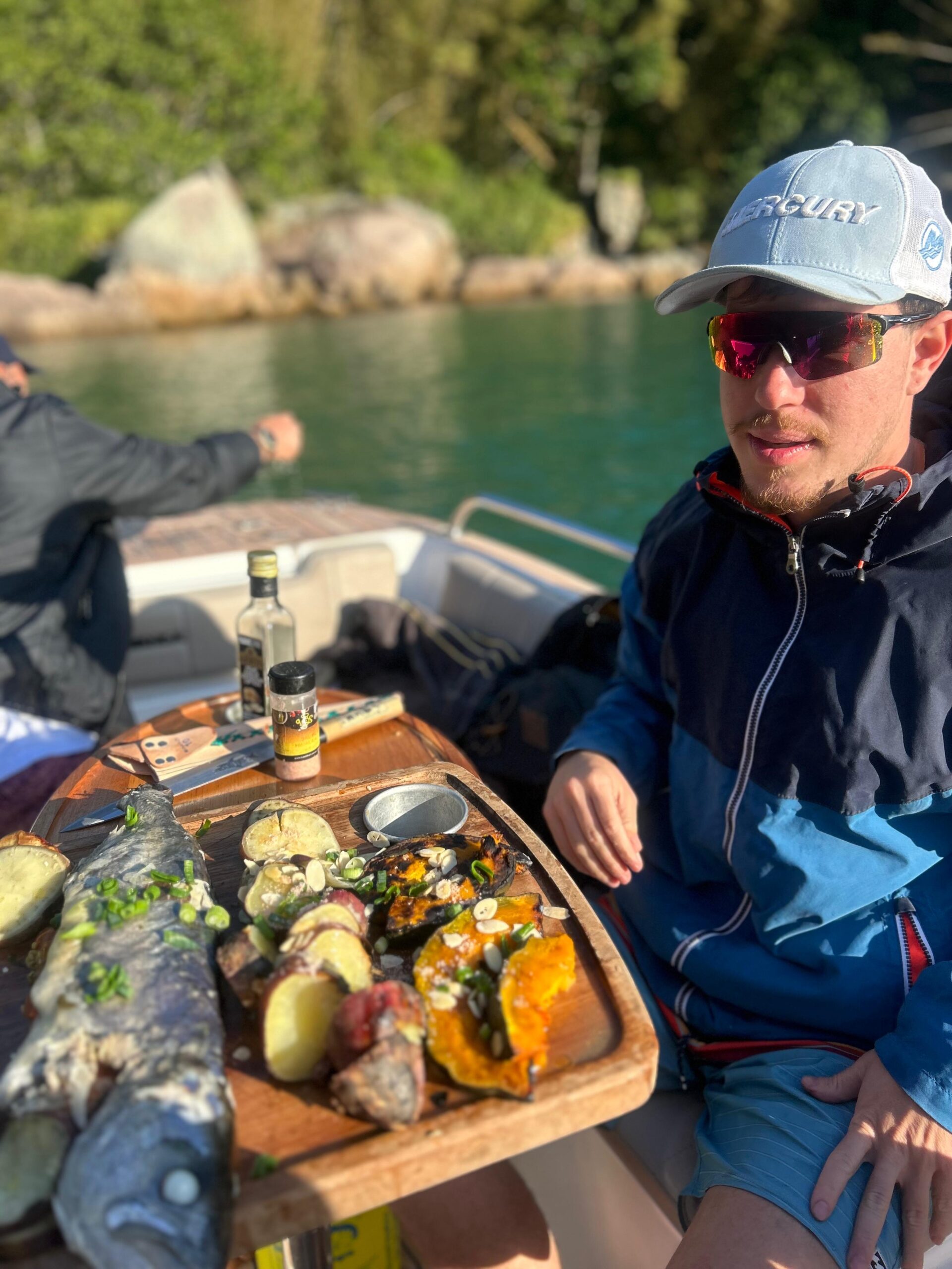 Itens de segurança: coletes salva-vidas, boias de emergência, extintor, rádio vhf e kit de primeiros socorros.